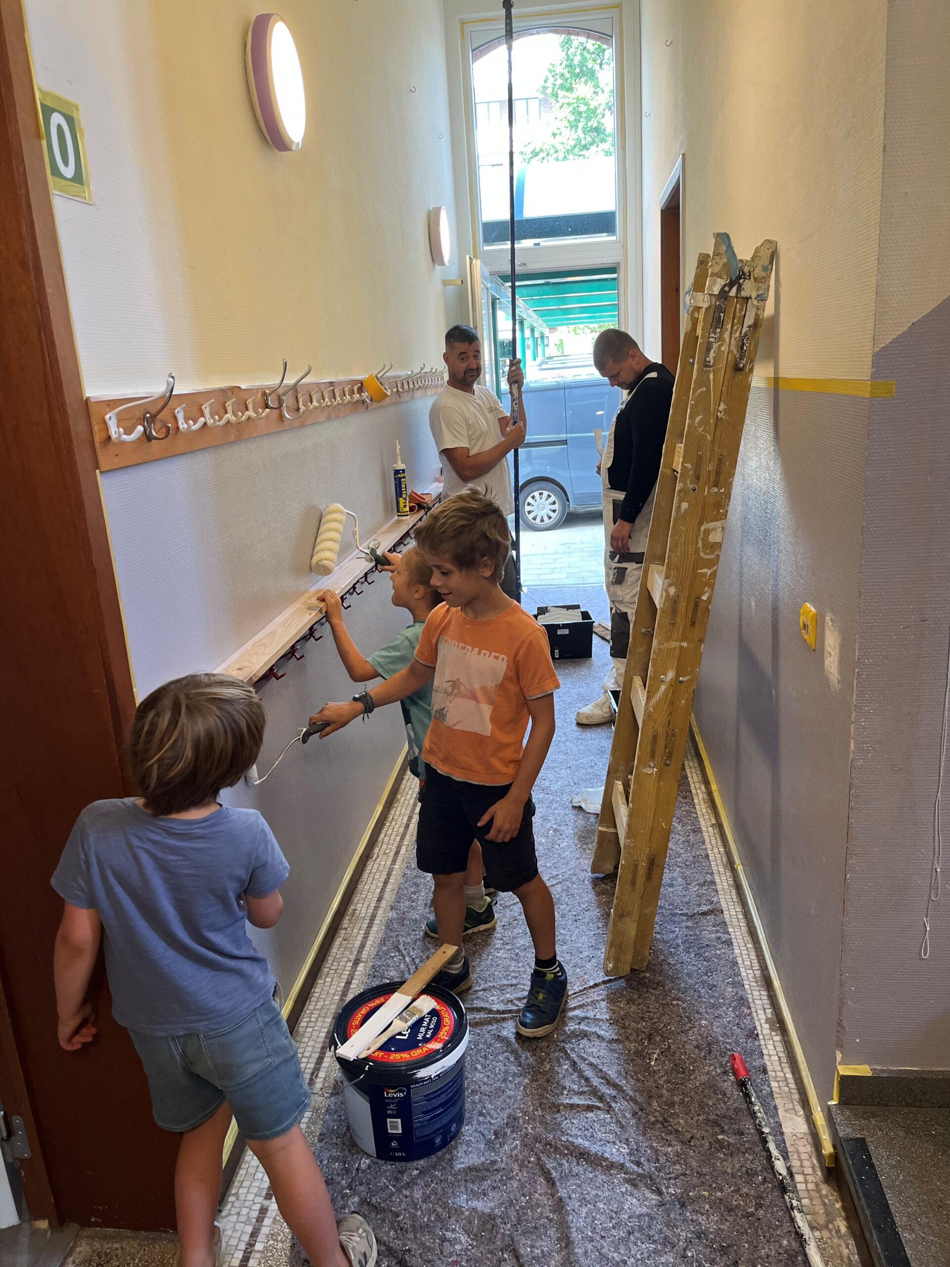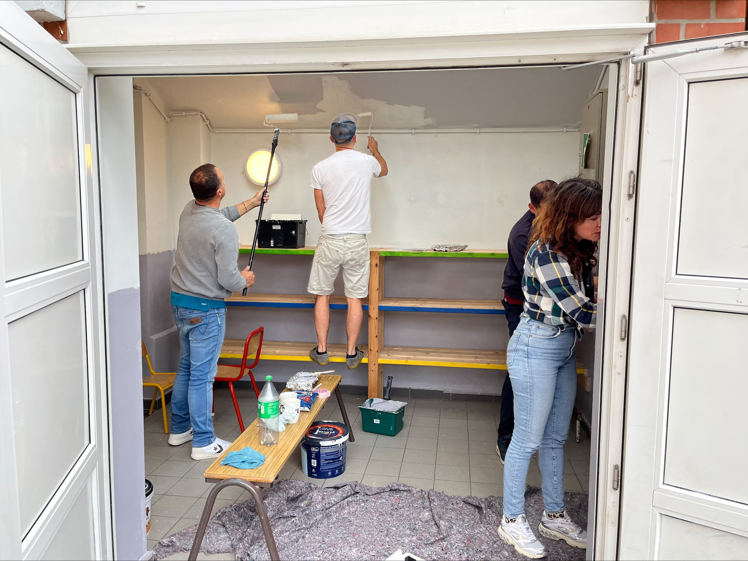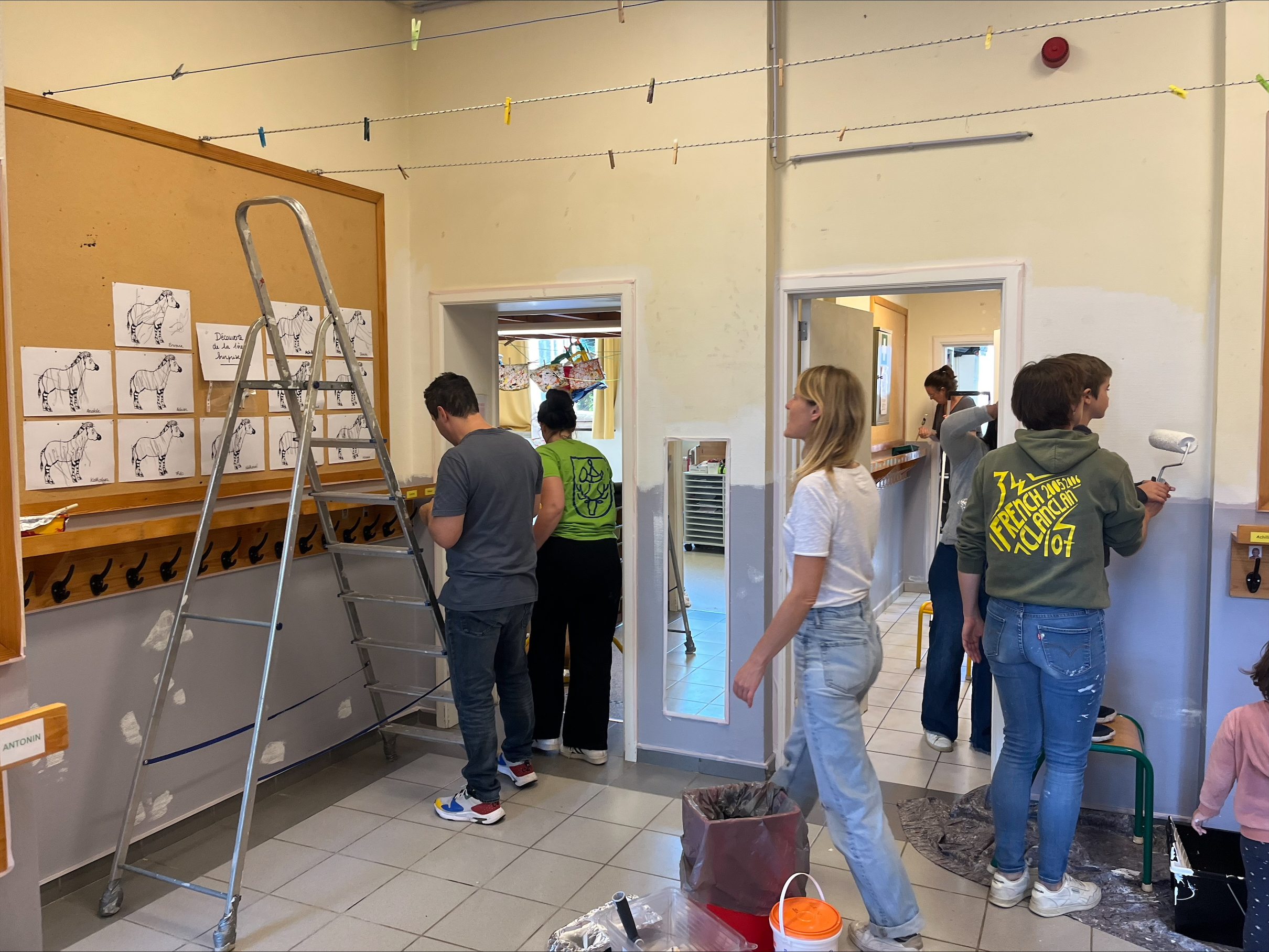 Bij l’école de la Sainte Famille werd dit klusproject volledig in de verf gezet, letterlijk en figuurlijk. De belangrijkste noden kregen een kleurrijke make-over. Op de nieuwe verflaag konden ouders en kinderen hun echte schildertalent tonen met allerlei creatieve fresco’s.