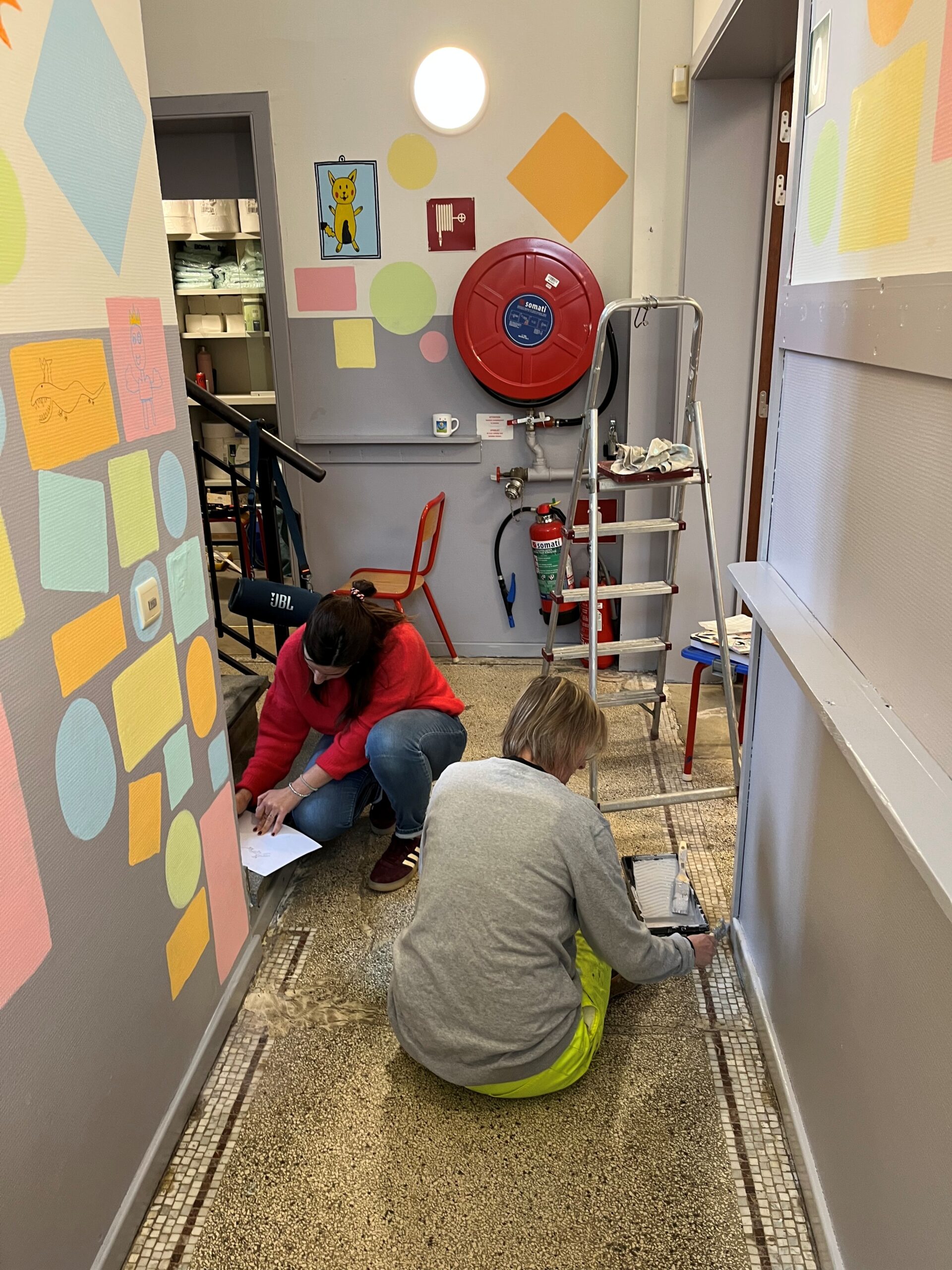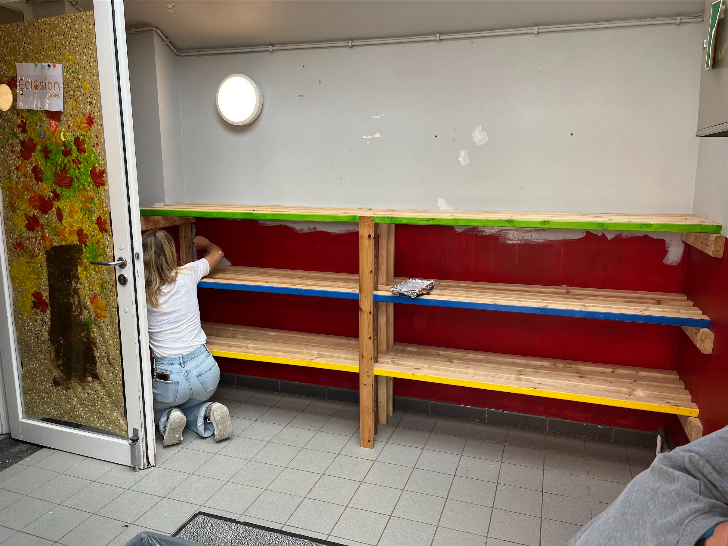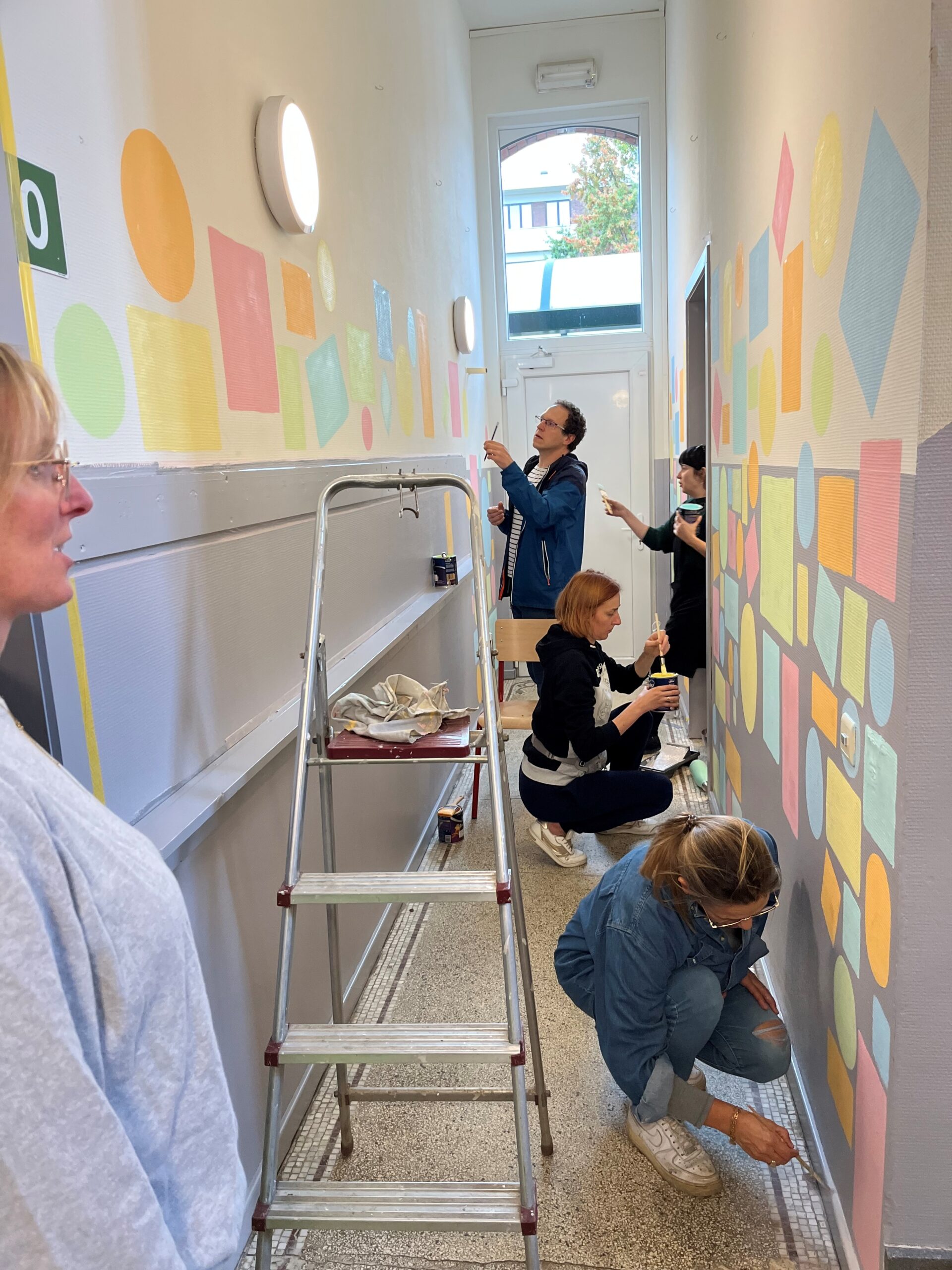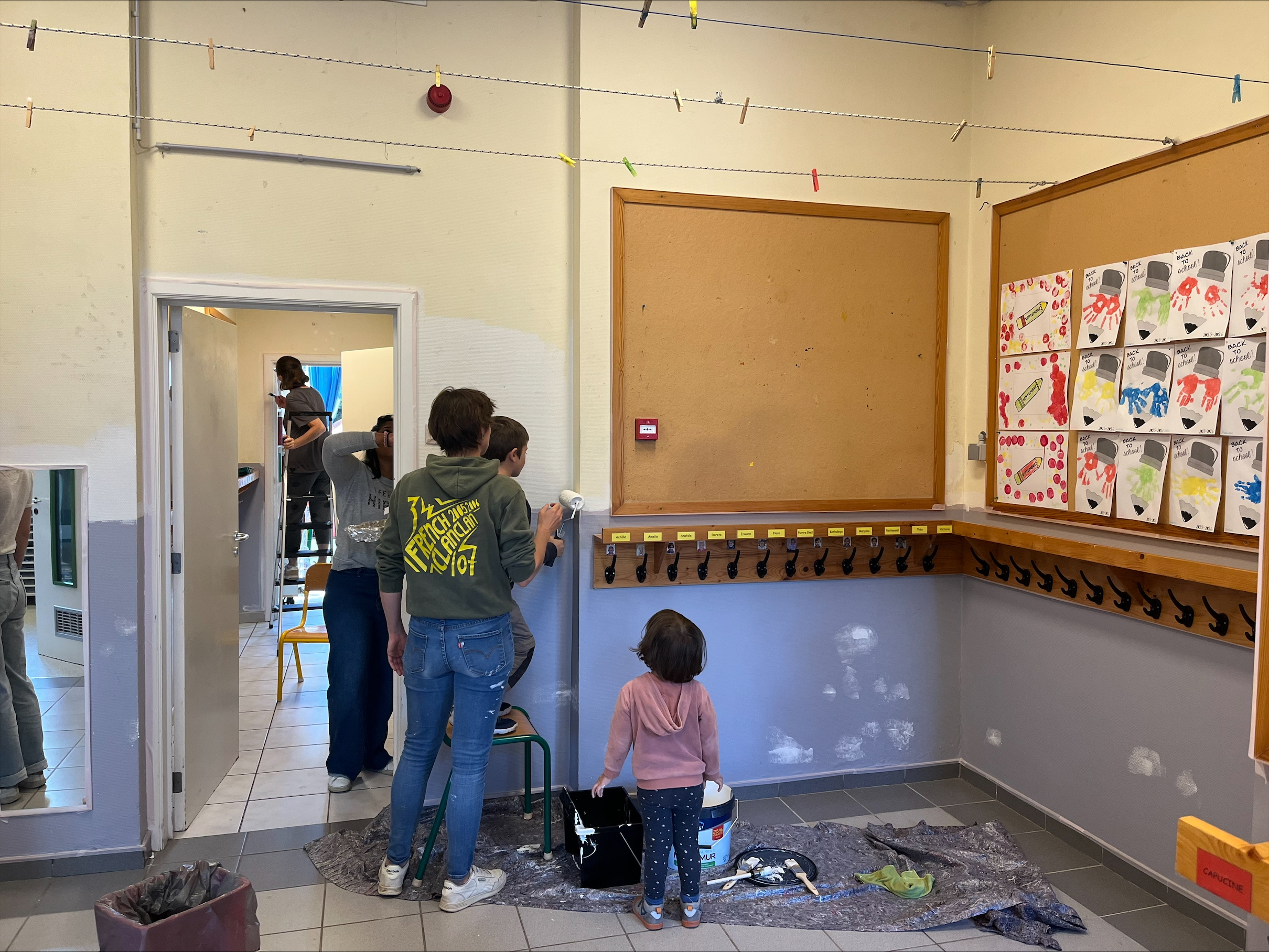 Bij l’école de la Sainte Famille werd dit klusproject volledig in de verf gezet, letterlijk en figuurlijk. De belangrijkste noden kregen een kleurrijke make-over. Op de nieuwe verflaag konden ouders en kinderen hun echte schildertalent tonen met allerlei creatieve fresco’s.