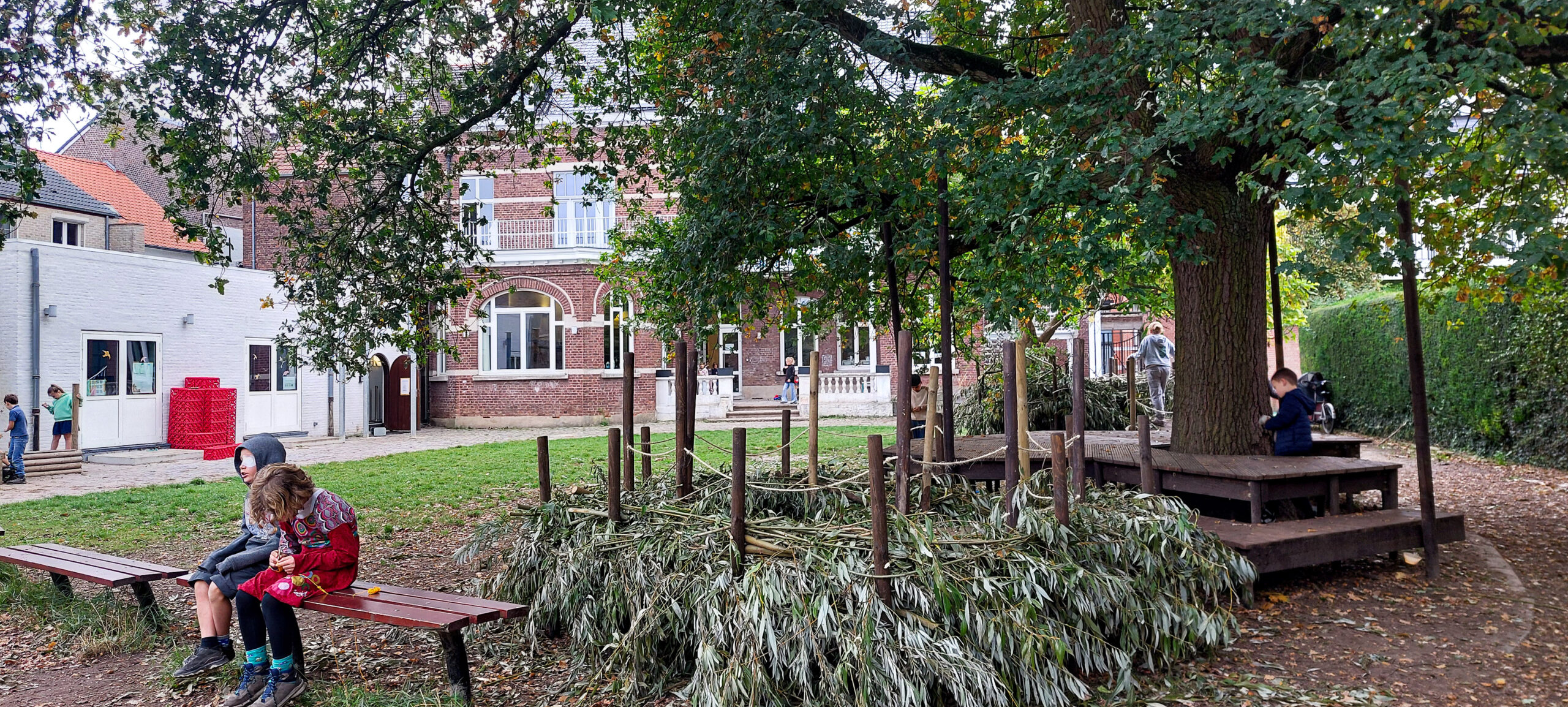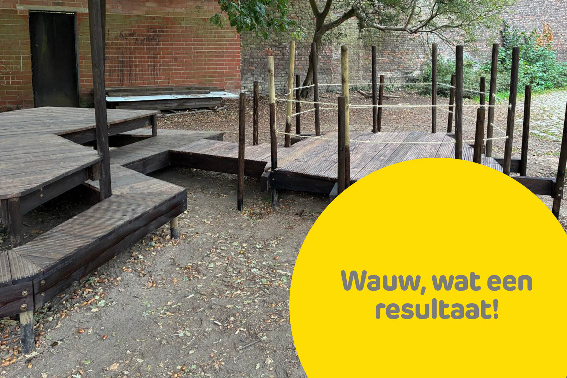 Bij Freinetschool Nachtegaai komen natuur en talent samen op hun gloednieuwe podium onder de boom. Deze main stage wordt langs beide zijden verlengd door twee podia die dienen als veilig nest voor de leerlingen tijdens de pauze. Van niets naar een nest vol ideeën.